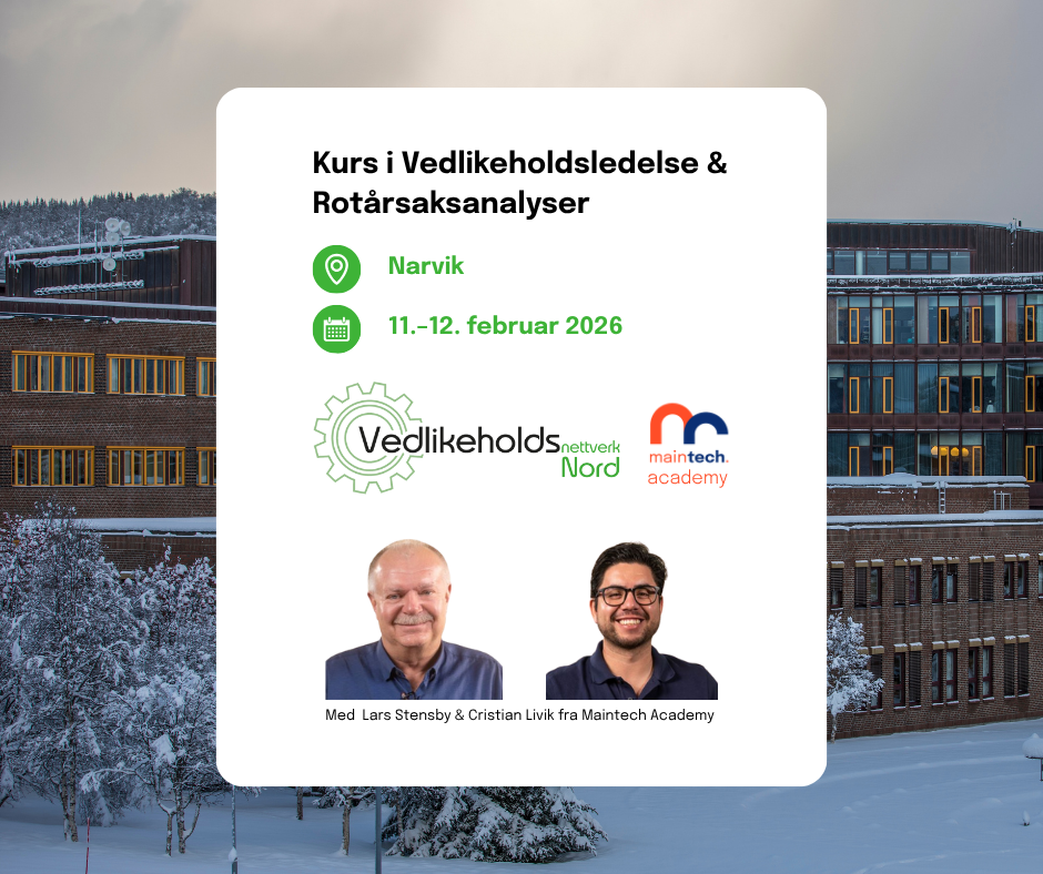 Velkommen til Norges nordligste kurs innen vedlikeholdsledelse og rotårsaksanalyse, 11.–12. februar 2026!